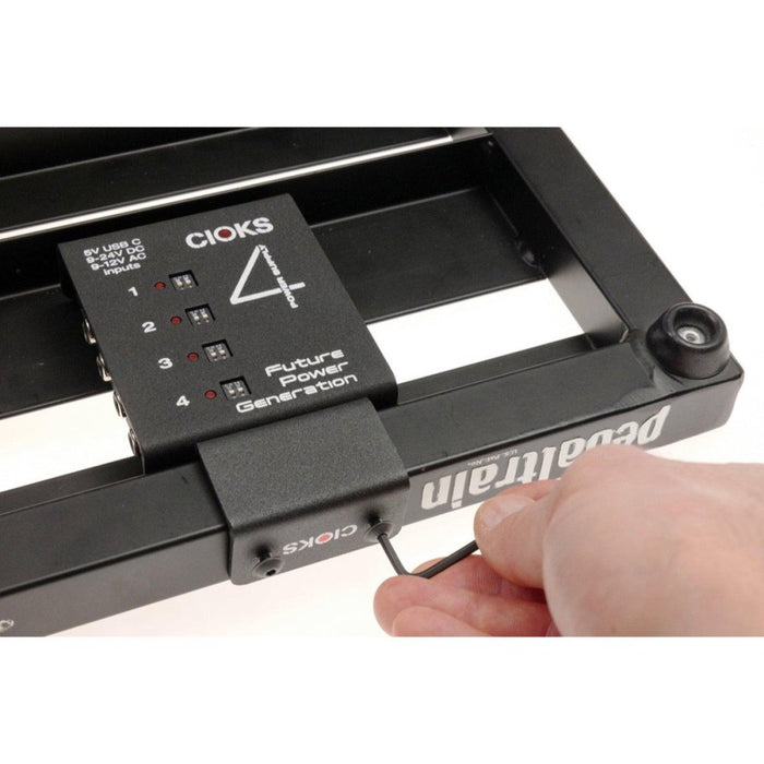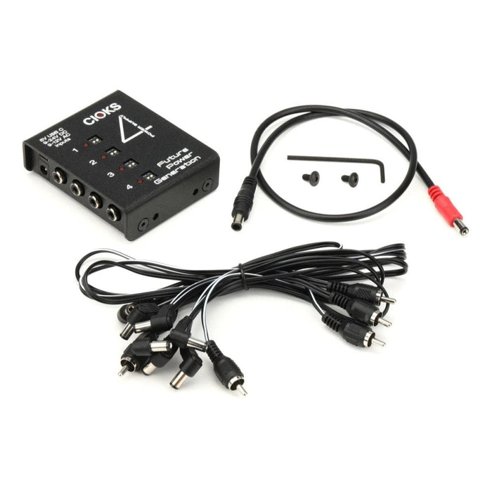 This flexibility means that you can use CIOKS 4 as a stand-alone unit and power it with any of the most common adapters, such as the ones you might use to power a single pedal. CIOKS 4 can also convert an unused AC outlet on your existing power supply into 4 isolated DC outlets.