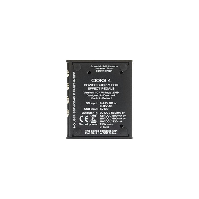 CIOKS 4 is the perfect companion for CIOKS DC7 in case you would like four additional outlets with four selectable voltages (9, 12, 15 and 18V DC) which can each deliver 660mA at 9V DC.