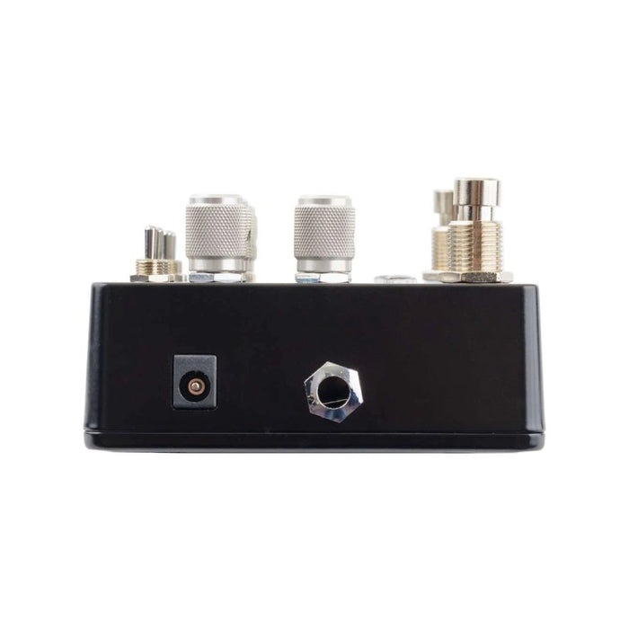 In this aptly named box you'll find a huge range of killer high gain tones. From crisp, mid-driven 80's metal, to scooped, modern down-tuned brutality, this little box of sonic mayhem does it all. The two independent channels can be voiced similarly so that one channel can be used as a solo boost, or they can be voiced entirely differently by using the mid range control in conjunction with the 3 position mid frequency select switch. Add in separate weight controls to shape the low end response of each channel, and a global hi/low eq section that allows you to fine tune your particular amp and cab combination, and you've got a serious tool to create a supremely heavy sounding rig.