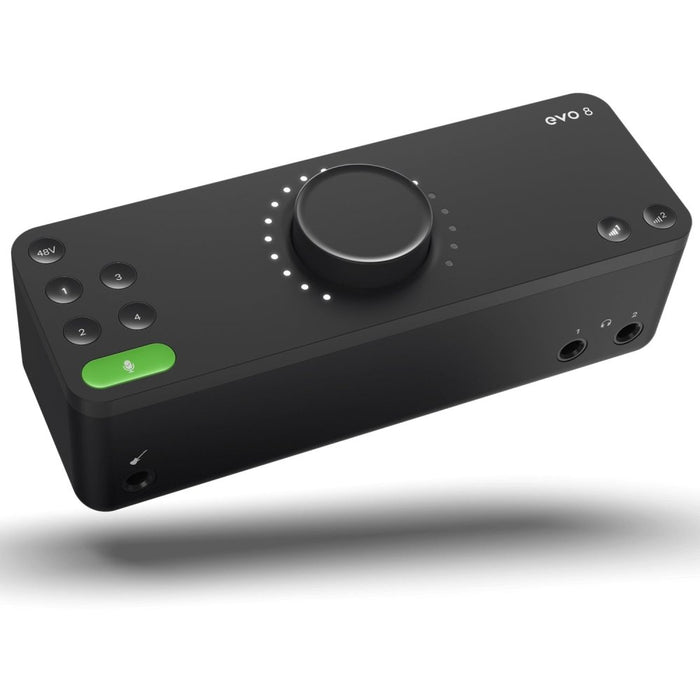 Don’t let the price point fool you! The EVO 8 is packed with professional-level components and functionality that deliver high-quality performance and stunning audio. Class-leading converters, along with a 24-bit/96kHz sample rate and a 113dB dynamic, ensure that you’re capturing pristine, distortion-free sound. Built to Audient’s high-standards, the EVO 8’s mic pres are transparent and flattering, and the JFET instrument input adds just a touch of color for a rich and satisfying sound. The EVO 8 has two stereo monitor outputs and two front-panel headphone jacks, and it’s powered over its USB 2.0 connection — so no need for an additional power adapter. And, the large volume knob feels great and gives you precise control over your monitor mix and input levels.