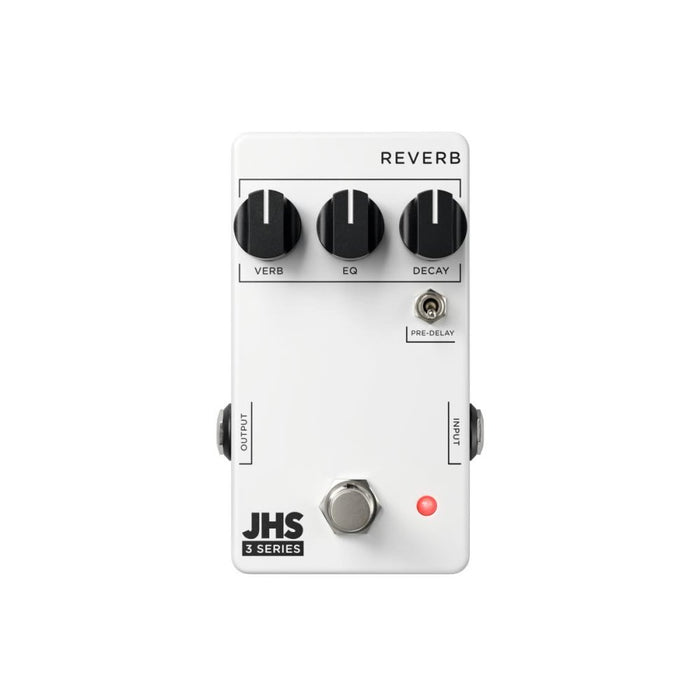 The JHS Pedals 3 Series Reverb is an extremely versatile unit that allows you to create the perfect amount of space for your guitar. You can achieve any reverberation effect, all the way from small room sounds to nearly endless washes of ambiance. The EQ lets you perfectly adjust for a bright or dark texture to the reverb's overall tone. The Pre-Delay toggle allows you to select a short delay before the reverb begins. This lets you explore effects ranging between slap-like singing in the shower sounds and spacey sounds.