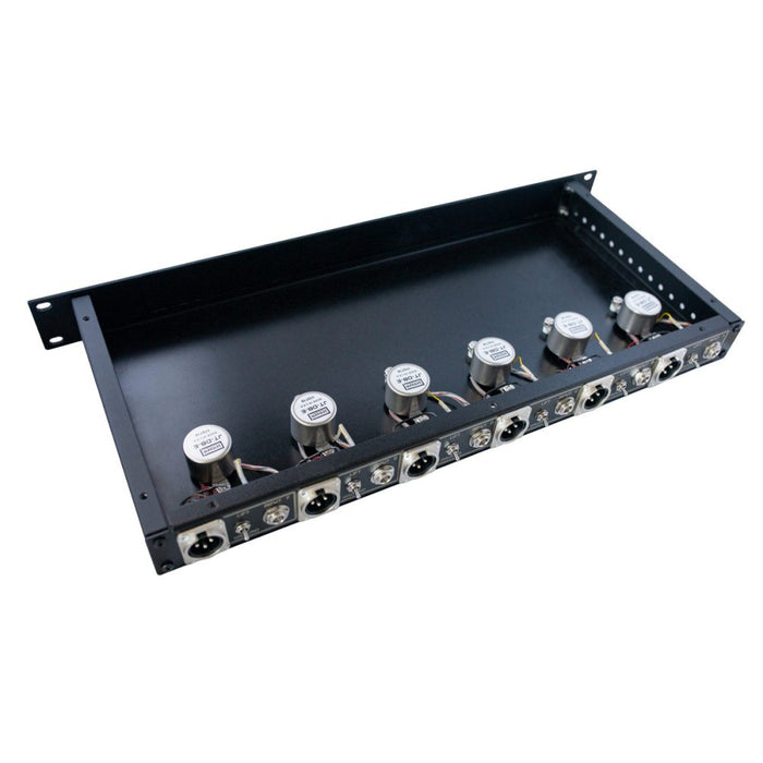 The six ¼ inch input and six XLR output jacks are out of the way on the back panel and routed for the shortest signal path. Six ground lift switches (one for each channel) are also mounted on the back so that they can be easily accessed but tucked away where they cannot be accidentally bumped.