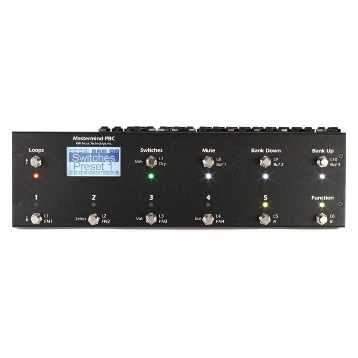 RJM Music Mastermind PBC Pedalboard Controller Features:- 10 audio loops, four of which are stereo capable and series/parallel switchable