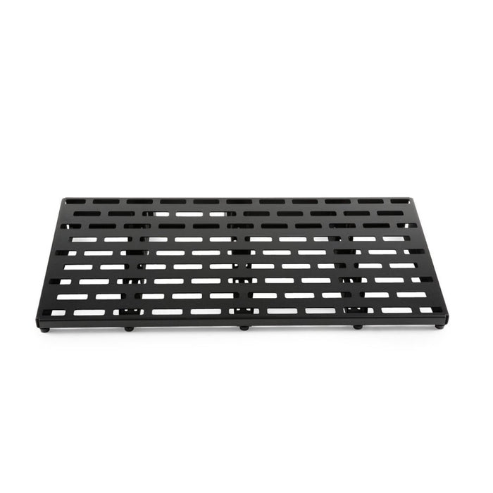 The new RockBoard® pedalboard series has been completely re-designed to create a pedalboard that is lightweight, rigid and rugged, and allows for the use of a multitude of pedals as well as power supply mounting solutions. Its uniquely ingenious construction is based on only one folded, cold-rolled aluminum sheet for the board frame and has not a single welded seam. This makes the board surface completely plain and gives you more pedalboard space for your money. U-shaped vertical support braces offer additional stability without adding too much weight. The new RockBoard® pedalboards will neither bend nor wiggle. The innovative slot-based design works equally well with the new RockBoard® Quick Mount pedal mounting plates (sold separately) as well as with standard mounting solutions (e.g. hook and loop tape, cable ties). The slots also let you easily hide cables underneath the surface for a neat and tidy setup. Additionally, any power supply can either be mounted underneath the board surface, or using the optional RockBoard® The Tray universal power supply mounting solution. All RockBoard® 2018 Series models (except Duo 2.1) are compatible with the RockBoard® MOD patchbays. With seven sizes ranging from 47 cm (18 1/2") to 100 cm (39 3/8") in width, we are sure you will find the perfect board for your needs. All sizes are available with either gig bag or flight case.