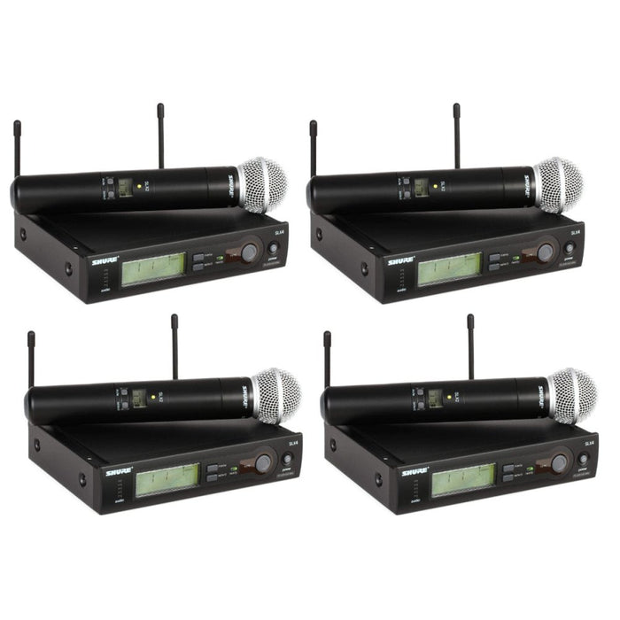4x Shure SLX24/SM58 UHF Wireless Microphone Kit (1x Handheld Transmitter & 1x Rack Receiver) - requires 2x AA Battery to operate