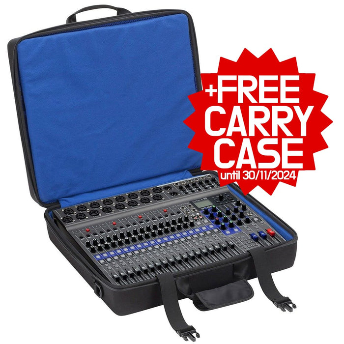 Zoom L20 LiveTrak Digital Console is a highly flexible 20 input digital mixer and multi-track recorder. The LiveTrak L20 makes capturing a rehearsal, producing a quick demo, or creating a great-sounding concert recording easy as its well suited for live performances, studio recording, band rehearsals, podcasts, and more. The mixer features 16 mono channels, each with combo mic/line XLR-1/4″ inputs with high gain, low-noise microphone preamps, +48V phantom power, and a single compression knob, while the two stereo inputs offer dual 1/4″ and RCA inputs. Channels 1-2 also offer Hi-Z inputs for connecting guitars and basses. All channels work with the on-board channel strip, which provides a low-cut filter, a 3-band EQ, a pan control, and two send FX for sending signals to the 20 built-in high-quality effects processor with two dedicated EFX Return channels.